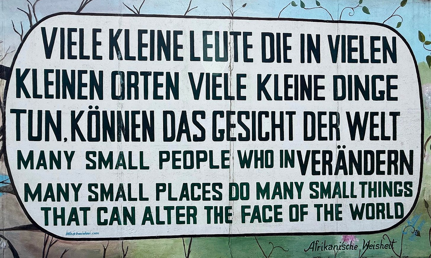 There’s also a literal reminder in Berlin for those of us in the U.S. who have had our hopes dashed in the nascent days of the second Trump term. It’s painted on what remains of the Berlin Wall — now an outdoor gallery for public artwork and another example of Germany’s turning swords into plowshares: