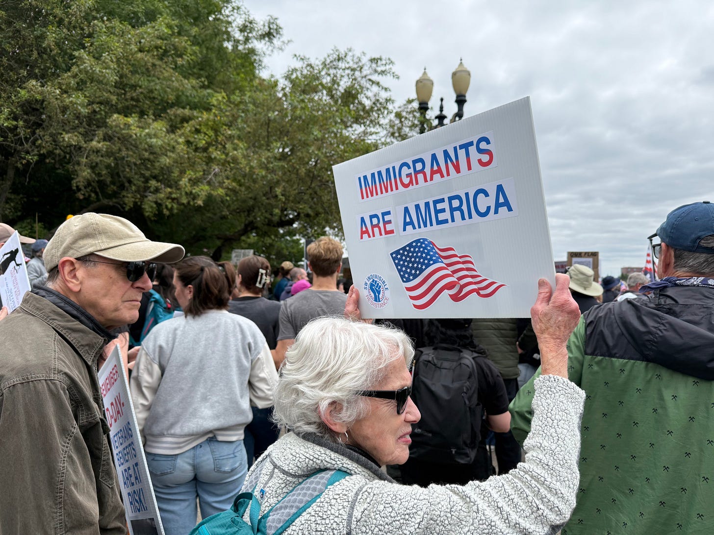 Walking the few blocks toward the waterfront, it became clear just how vast the assembling crowd was going to be — people and signs as far as one could see. Lots of car horns honking, music playing, and an overall positive vibe.